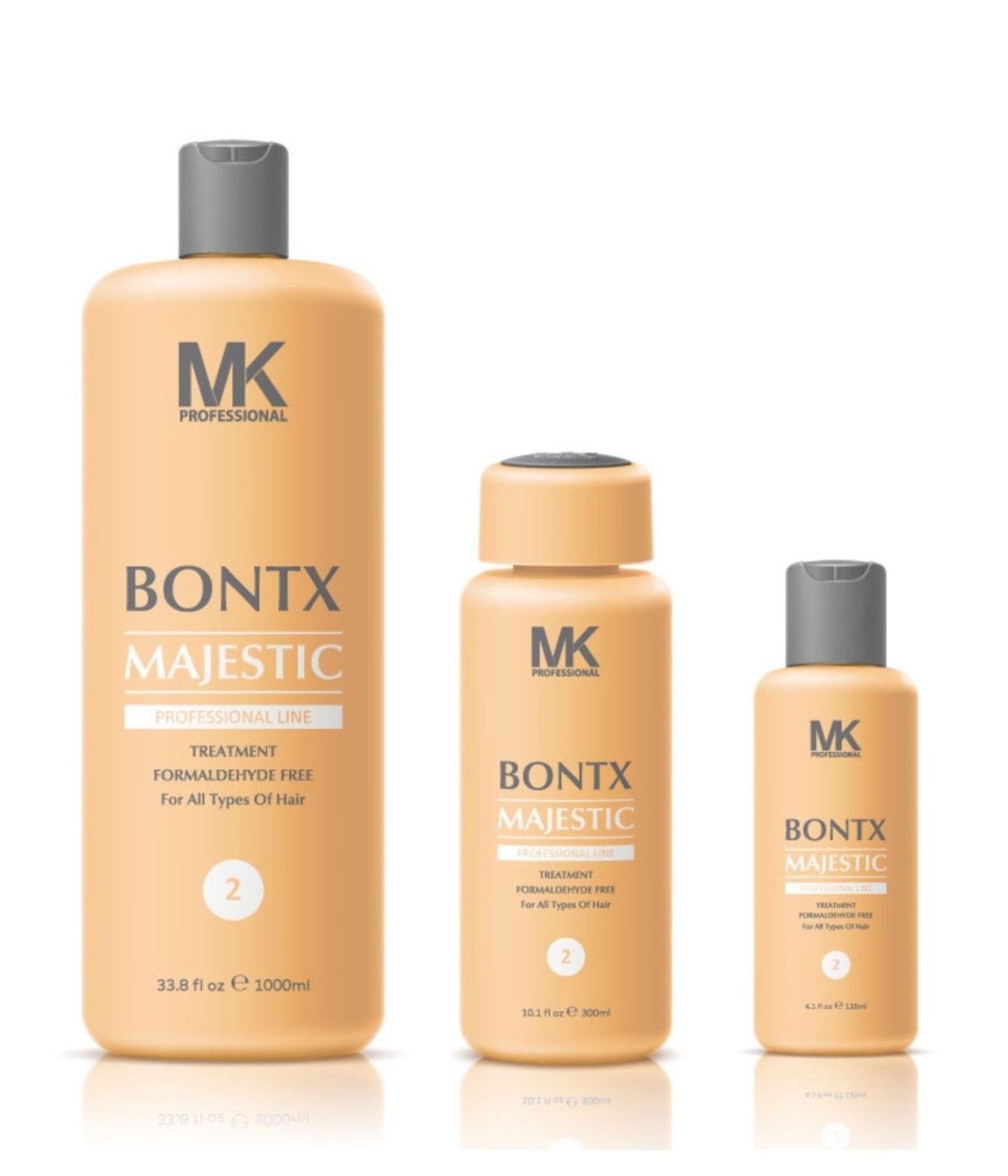 MK Bontx Majestic Hair Treatment is een professionele salonbehandeling die kroes elimineert, het haar glad en handelbaar maakt en de natuurlijke glans van het haar vergroot. Verrijkt met rijstproteïne, BON-T-L Peptide en aminozuren, herstelt deze behandeling de haarvezels, verbetert de elasticiteit en beschermt het haar langdurig. Het resultaat is zichtbaar, voelbaar en langdurig, met haar dat sterker, voller en zijdezacht aanvoelt.